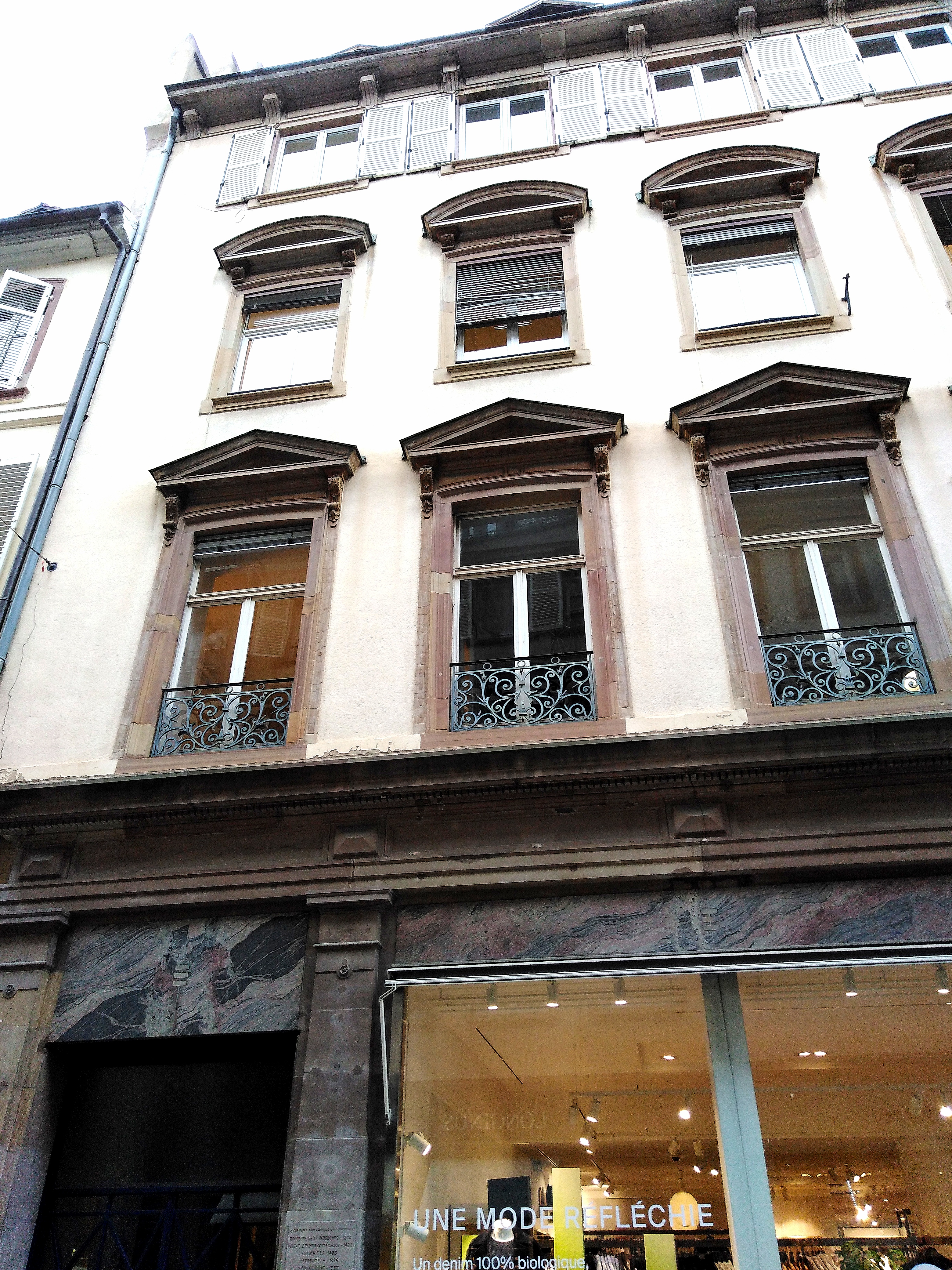 Au delà des articles de mode et d'habillement, présentés avec tout le chic et l'élégance requise, dans cette boutique lumineuse et spacieuse où l'accueil s'avère merveilleusement courtois, regardez quelques instants autour de vous, pour dépasser le quotidien qui nous entoure et prenez quelques secondes pour découvrir à l'extérieur, la plaque sur le pilier, à droite du numéro 21. Les lieux ont évolué mais 5 empereurs du Saint Empire romain germanique hébergés en cet endroit, cela rajoute un tantinet de classe.