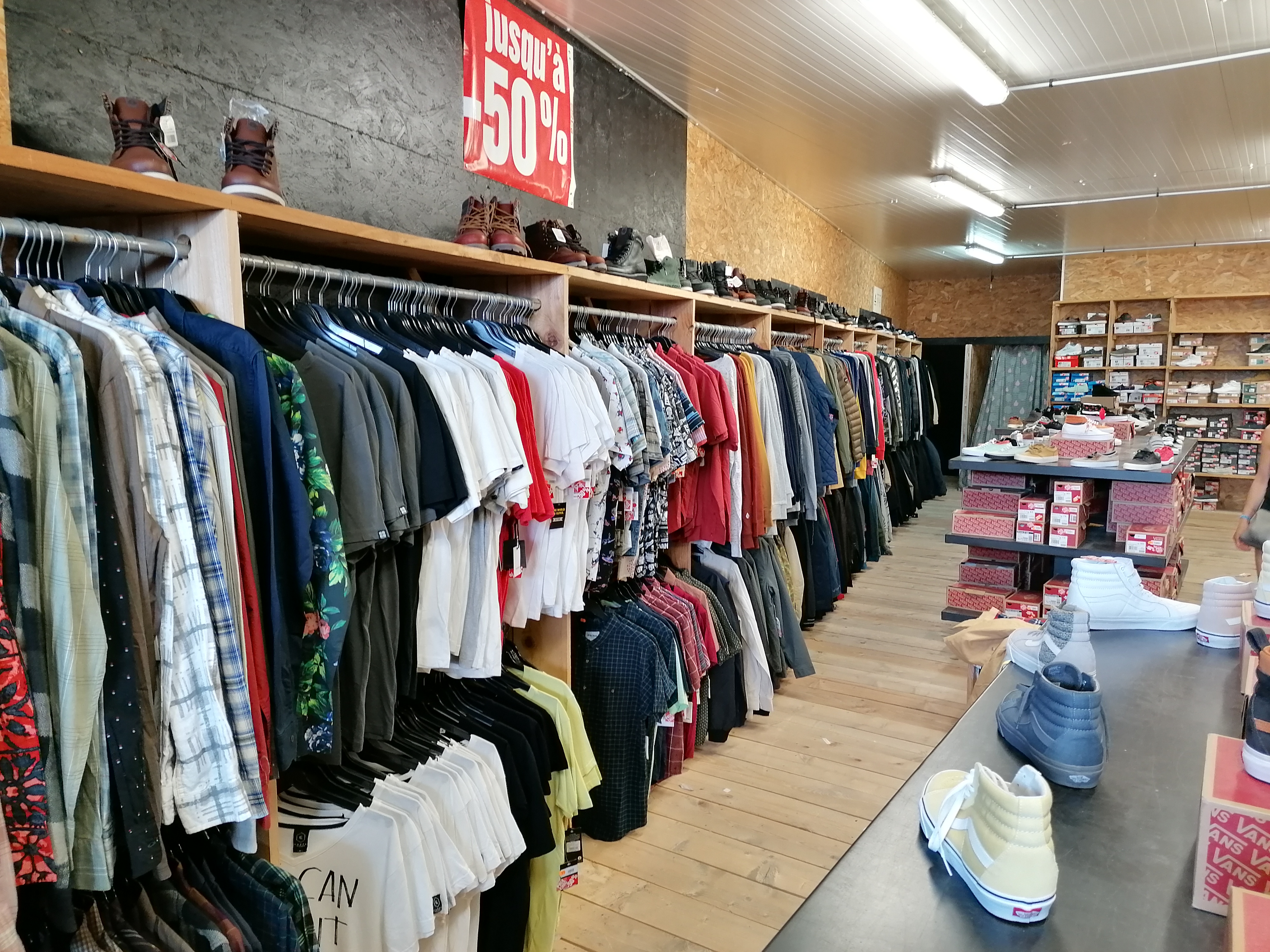 Outlet très cool avec toutes sortes de vêtements de marque, matériel de surf, etc.